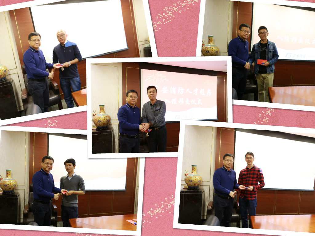 在2017年最后的工作日, 12 月29 日上午 11 時在廣安消防的大會議室里,公司為12位成功獲得偉祿雅苑人才住房入住申請的員工舉行了入住移交儀式。會議邀請了董事長曾曉亮先生與總經(jīng)理花文輝先生,12位員工多數(shù)在一線工作崗位,由于工作原因部分員工無法到場,5位代表參加了本次儀式活動。