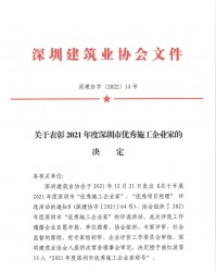 此次評選工作遵循企業(yè)自愿申報(bào)、單位推薦、協(xié)會組織、專家評審、社會監(jiān)督的原則,經(jīng)專家組初審、企業(yè)評價工作委員會審核,決定授予53人2021年度深圳市優(yōu)秀施工企業(yè)家稱號”!