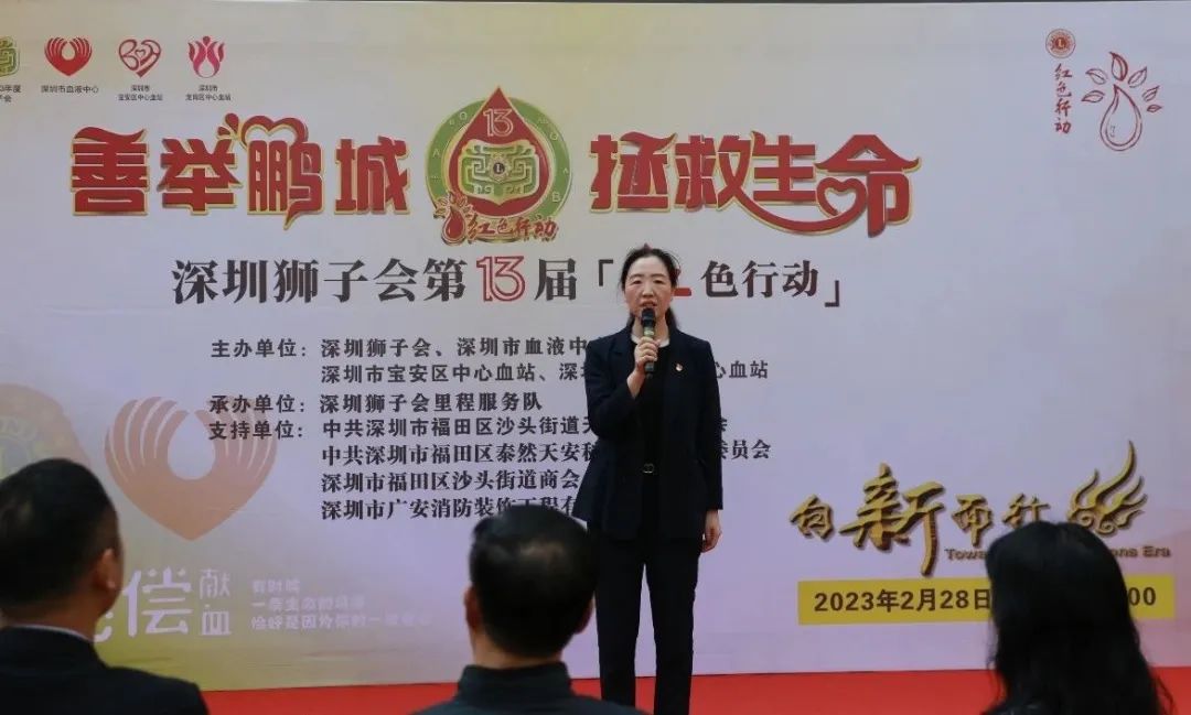 2023年2月28日上午由深圳獅子會(huì)、深圳市血液中心、中共深圳市福田區(qū)沙頭街道天安社區(qū)委員會(huì)、泰然天安科技園區(qū)聯(lián)合委員會(huì)、深圳市福田區(qū)沙頭街道商會(huì)、深圳市廣安消防裝飾工程有限公司黨支部聯(lián)合舉辦的第十三屆“紅色行動(dòng)·善舉鵬城 拯救生命”活動(dòng)在福田區(qū)天安文化廣場(chǎng)舉辦。